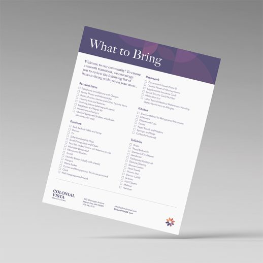 Senior Living “What to Bring” Flyer